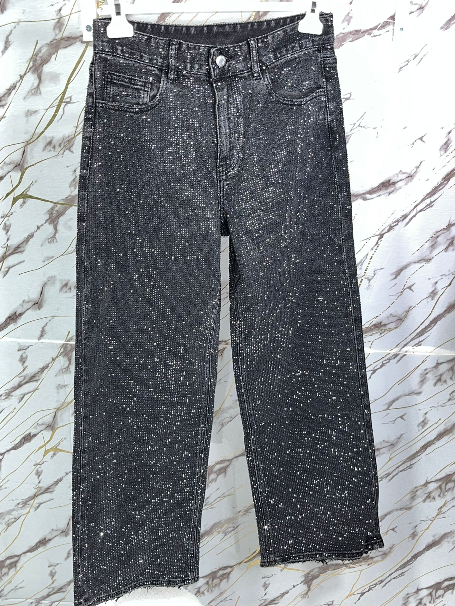 I Jeans Lucy sono tempestati di brillantini su tutta la superficie, offrendo un effetto scintillante e sofisticato. Questo dettaglio esclusivo trasforma un capo classico in una scelta moderna e di grande impatto visivo, perfetta per chi desidera distinguersi con eleganza e stile.