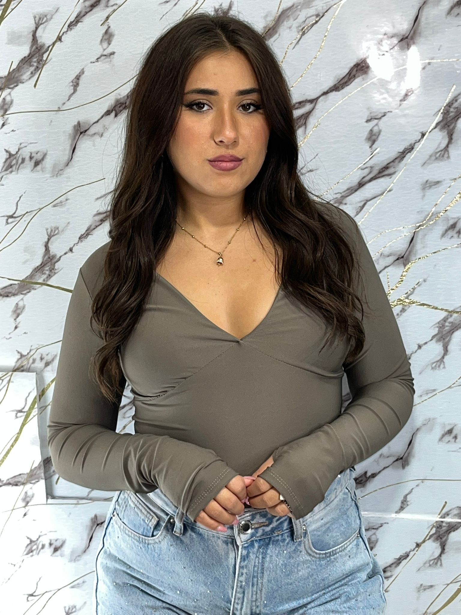 Realizzata in lycra di alta qualità, la maglia Aurora presenta uno scollo a V elegante e funzionale che valorizza qualsiasi tipo di corporatura. Il tessuto elastico garantisce comfort e libertà di movimento, ideale per chi cerca stile e praticità in un capo versatile. Perfetta per occasioni casual o da abbinare a capi più formali.